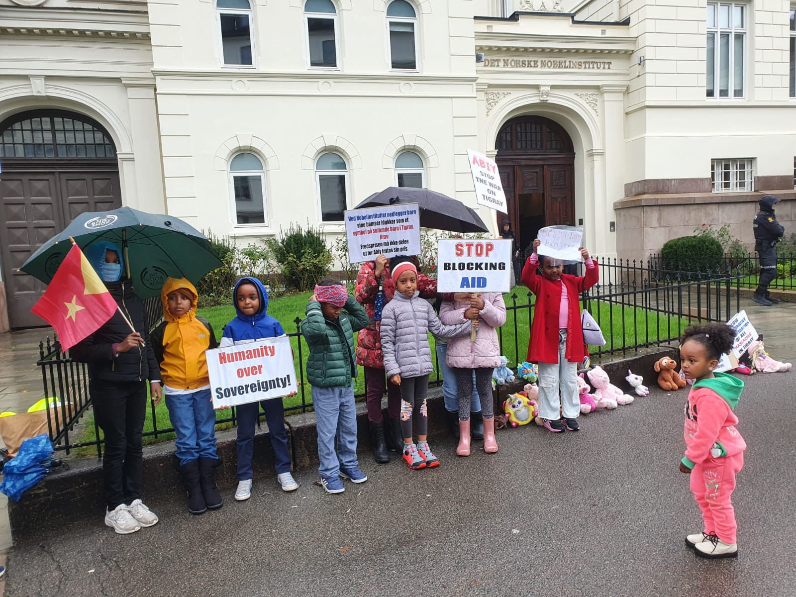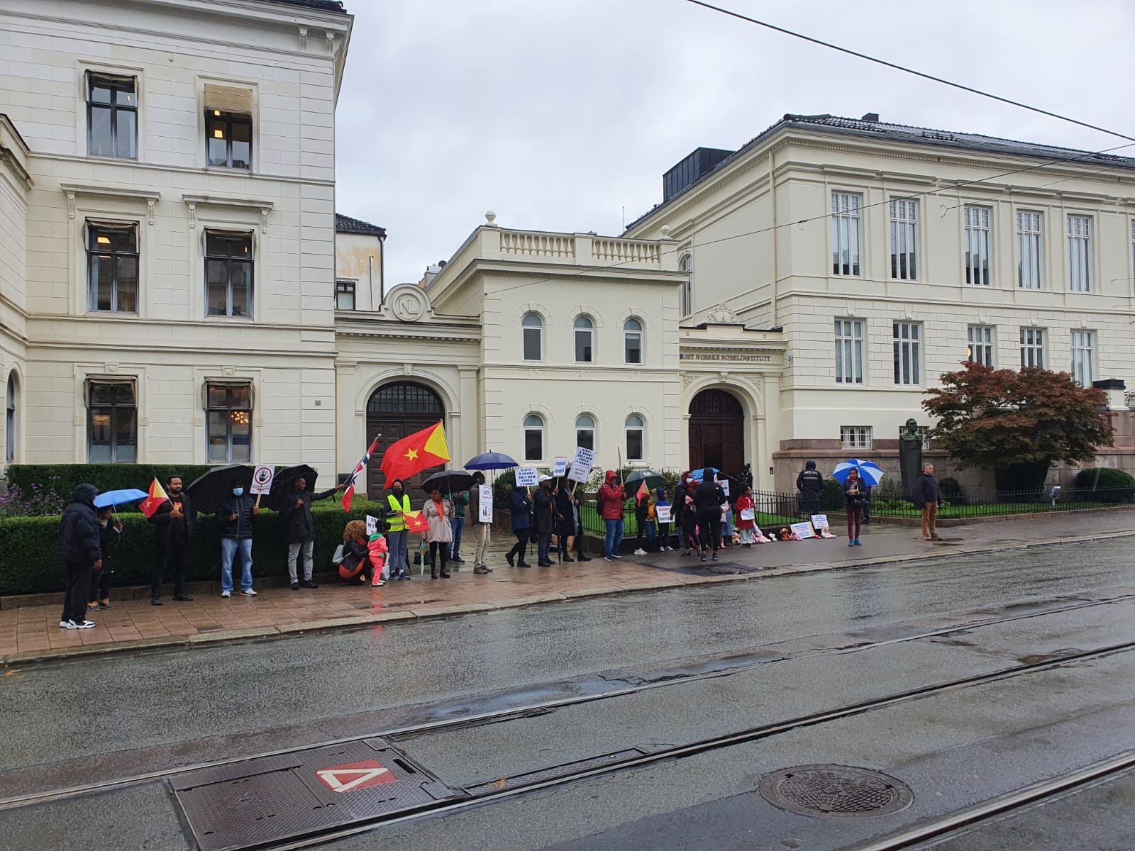 Protesters gather outside the Nobel committees offices, as reports come through of a news military offensive in Tigray